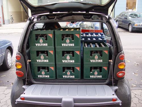 Auf dem Weg von der Arbeit nach Hause kaufe ich selten mit dem Volumen von sechs Bierkisten ein. Für ungeplante Einkäufe im Supermarkt wird es nicht mehr, als ich mit einem Mal ins Haus tragen könnte. Und du?Ist doch schön, dann bleibt mein Fahrzeug selten, gibt doch nix langweiligeres als den 15 millionsten Golf zu fahren..