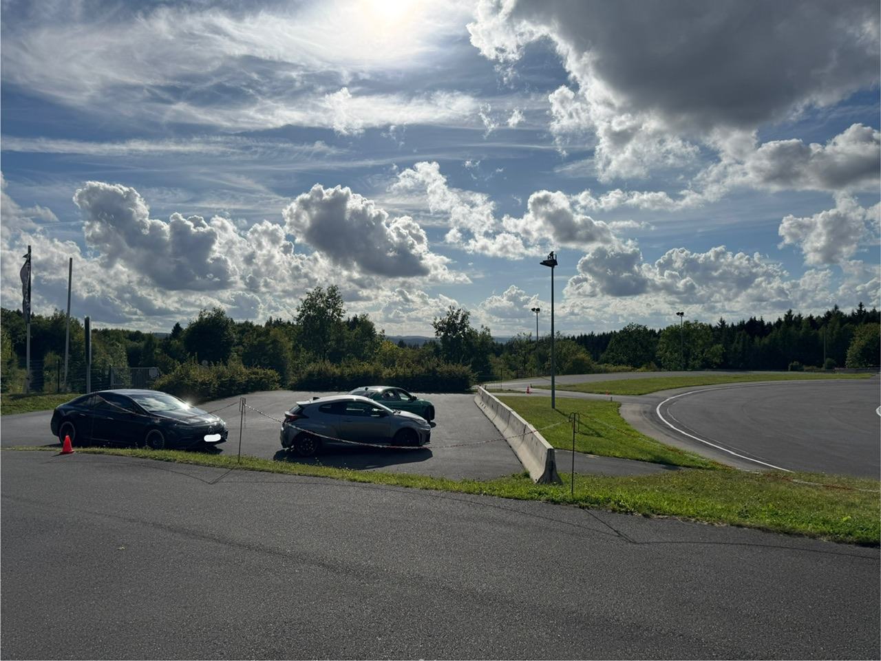 Ging Anfangs mit der korrekten Sitzposition und Lenkradbedienung los (machen wohl die allermeisten direkt falsch). Danach bisschen Slalom gefahren (haelfte Gleitbelag). Assis hatten wir immer komplett abgeschaltet. War ne krasse Erkenntnis wie schnell man ohne Hilfssysteme einfach nur noch Passagier im Karren wird. Man muss UNGLAUBLICH schnell am Lenkrad sein sobald die Karre ernsthafter in 'kritische' Fahrsituationen kommt.