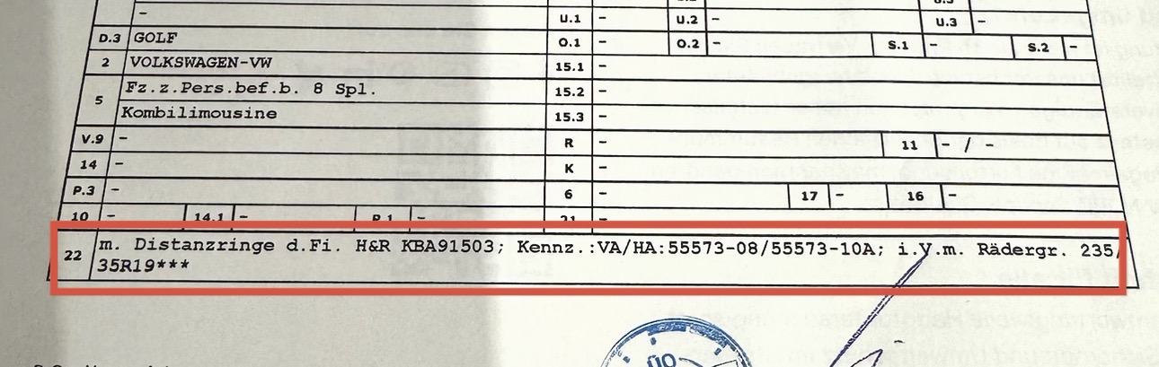 Da sollten eigentlich die Spurplatten mit 15 mm für die HA am E60 drin stehen. Ich weiß auch noch ganz genau, dass ich das habe beim TÜV über meinen Schrauber habe eintragen lassen nachdem die DEKRA sich geweigert hatte. Ich glaube das ist irgendwie verloren gegangen als ich die Kennzeichen gewechselt habe beim Verkauf vom M235i.