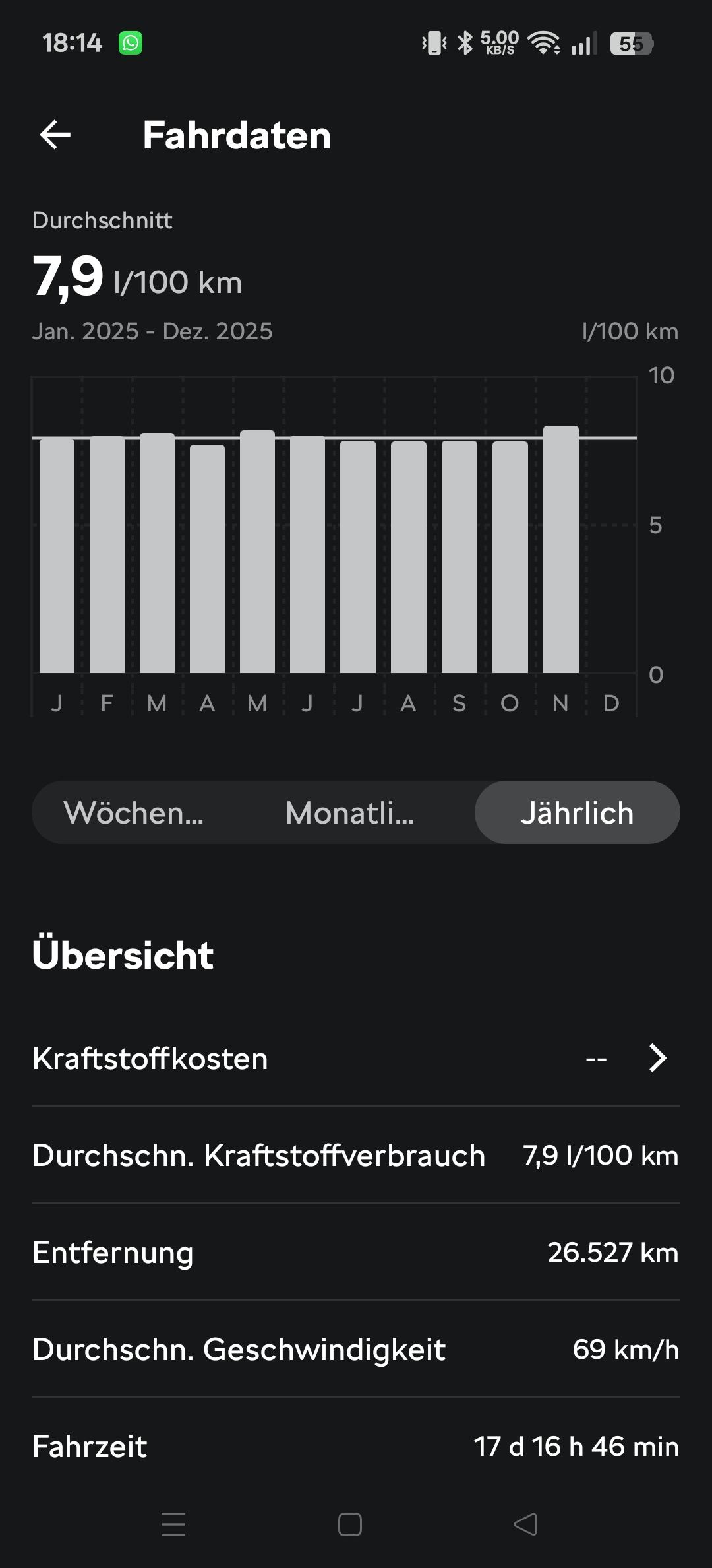 Ist dem geschuldet, dass ich nur Landstr. und Autobahn zur Arbeit habe und entsprechend zügig fahren kann.