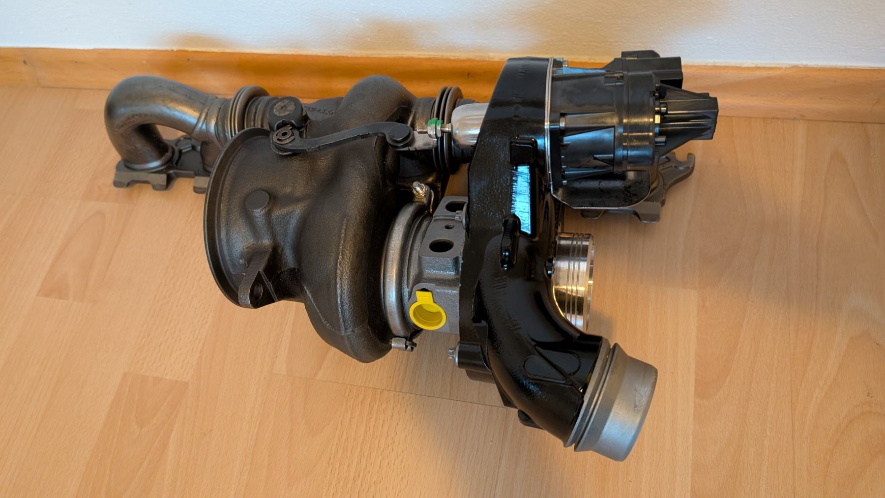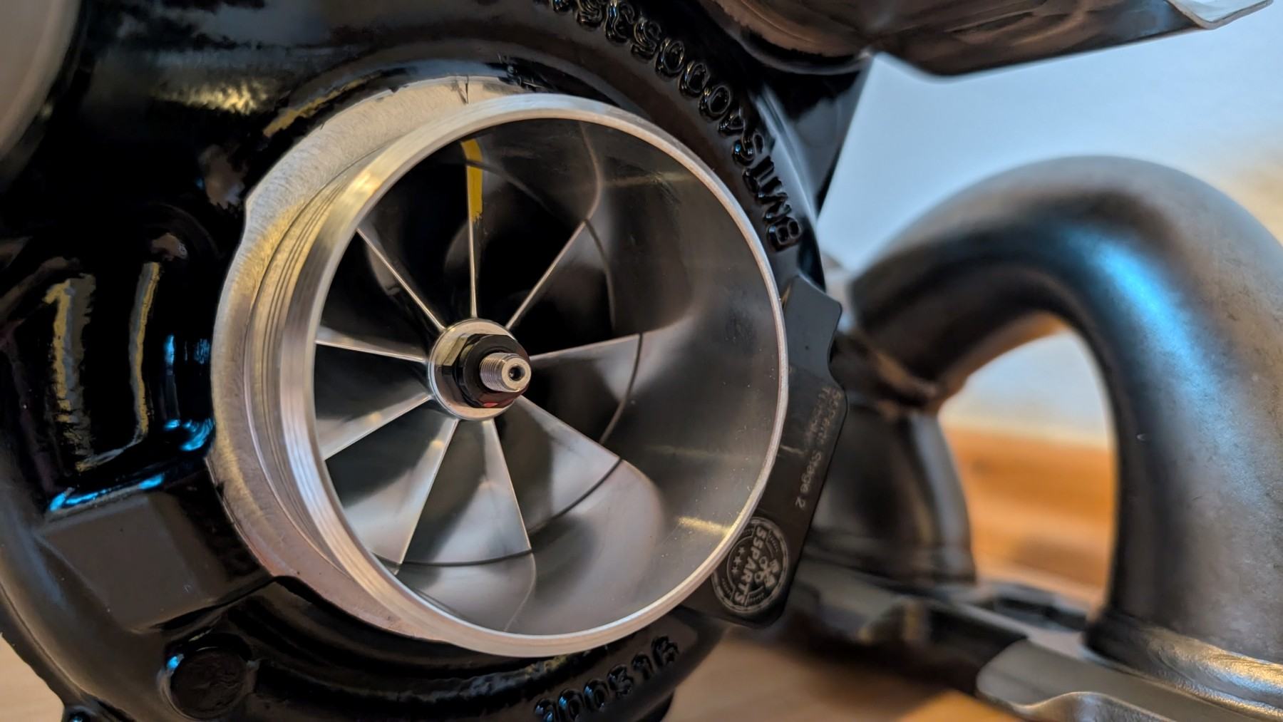 Turbolader ist ein thermo-isolierter TTE700, thermoisolierte Downpipe mit 200 Zellen Unterflur und Sport-OPF, 3.5“ Abgasanlage „straight“, 5“ Carbonansaugung mit Inlet, evo3 Ladeluftkühler von Wagner, Kerzen und Spulen, Hochleistungs-Öl, CatchCan, DogBone, bla bla bla