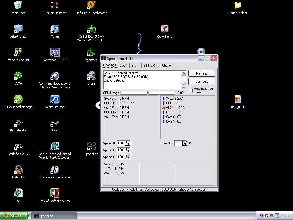Mal eine Frage, was ist das AUX überhaupt was Speedfan da ausliest? Doch wohl nicht der Soundausgang oder!? MfG, chrissi