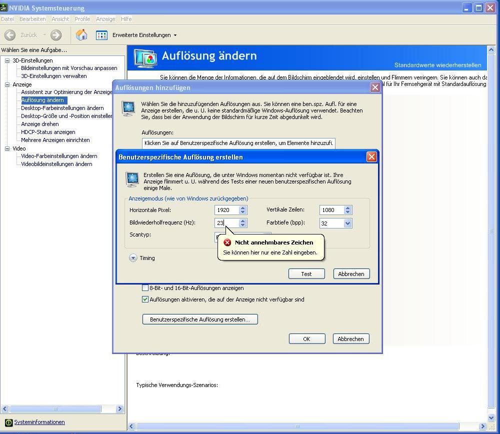 nvidia systemsteuerung - Anzeige: Auflösung ändern - Button: Auflösungen hinzufügen...