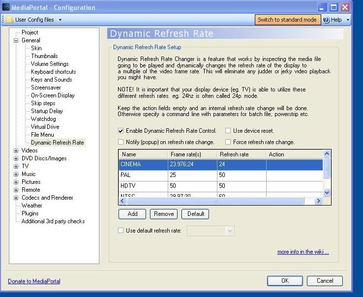 der dynamic-refreshrate-changer von mediaportal, erkennt scheinbar nur 24p-material und eine andere refreshrate als 24hz erkennt der auch nicht.