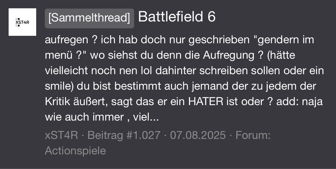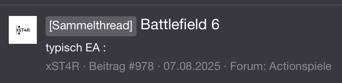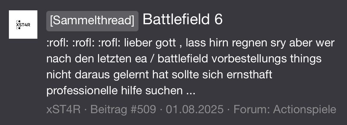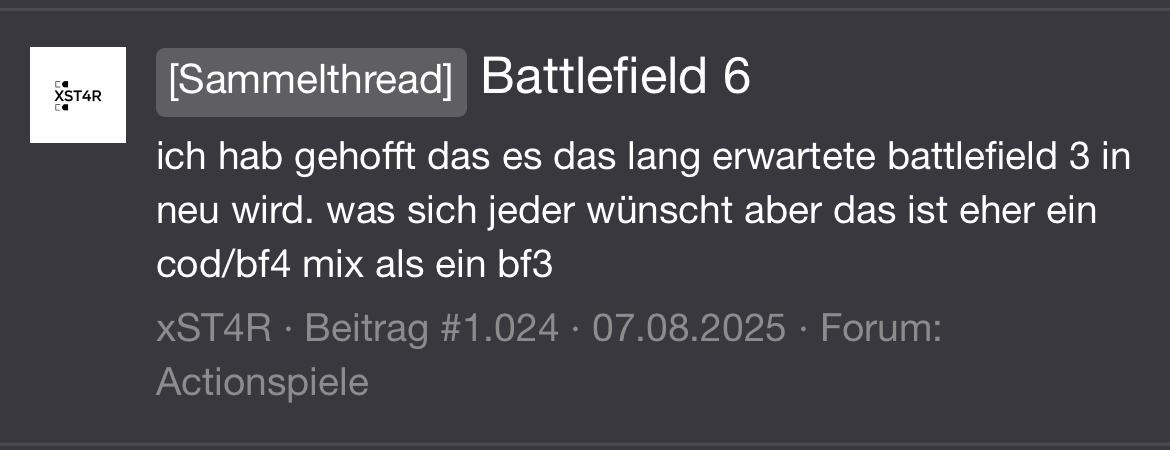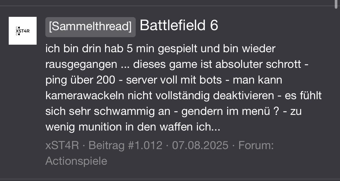 Geh doch einfach in den Delta Force Thread. Das Spiel findest du ja besser als BF6.