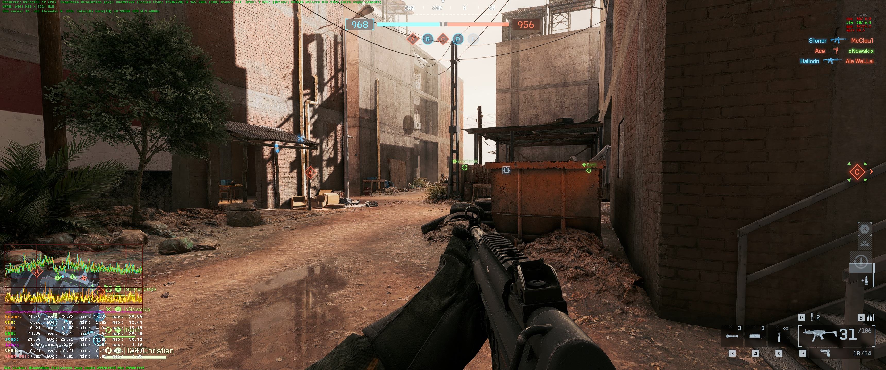 Das Einzige, was mir aufgefallen ist (im AB), ist, dass die Hotspot-Temp der GPU beim Spielen bei 95° ist und dann aber genau in den Momenten, wo ich im AB extreme Frametime-Peaks auf so 80-100ms habe, kurz auf 75-85° droppt und danach dann wieder auf 95° geht, wenn die Frametimes wieder ok sind.