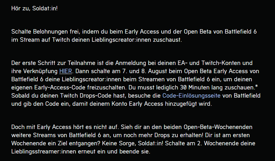 DAFÜR muss man selbstverständlich beide Konten verknüpfen, weil die Drops beim Klicken auf "Abholen" direkt in den EA-Account/BF6 rüberwandern.