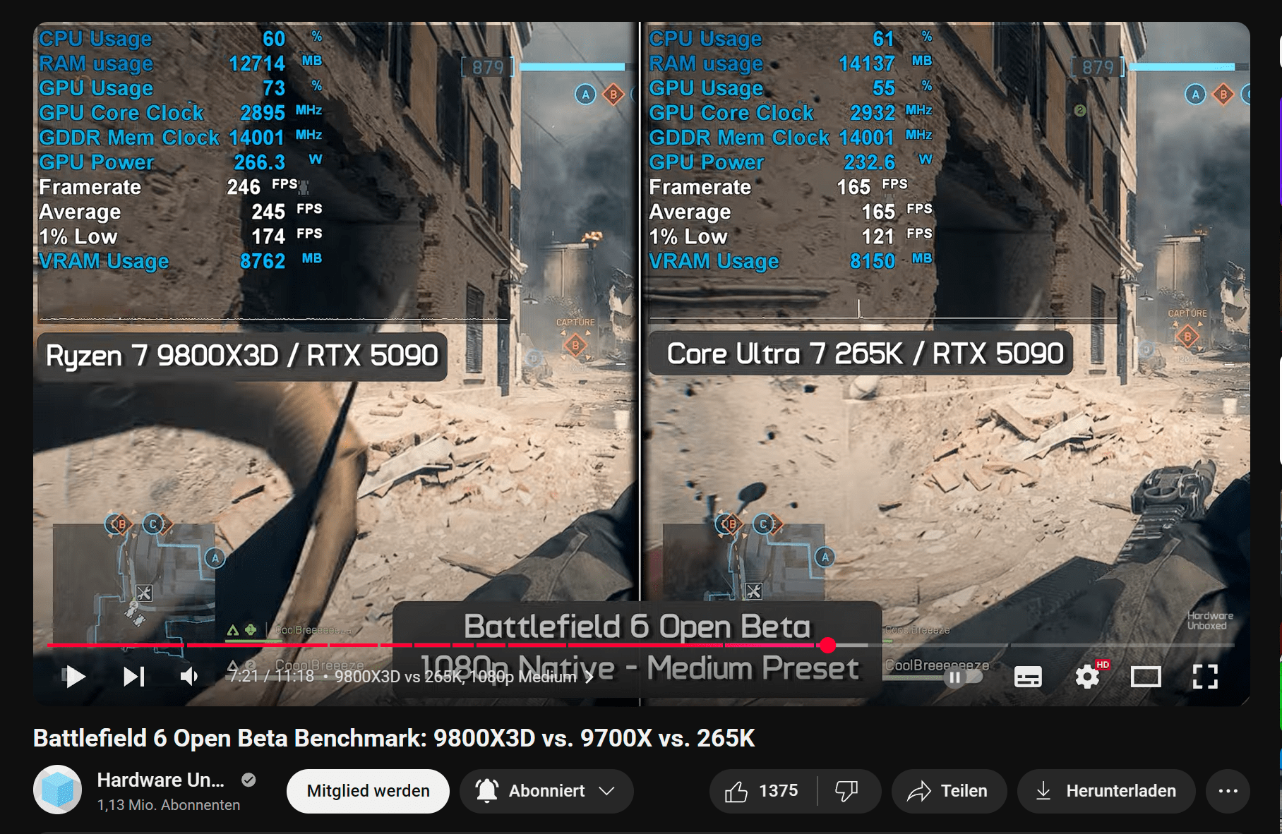 9800x3d vs 265k