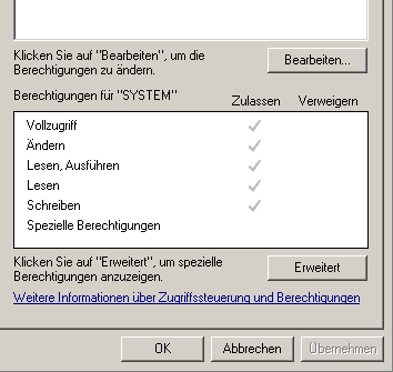 Ein auf nicht alle Ordner Berechtigungs und Vollzugriff und Admin