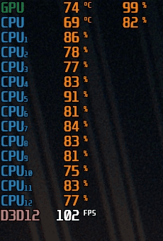 Nun zum Eigentlichen. Ich hab im Spiel ne CPU-Auslastung von ca 90-95% auf allen Kernen, jedoch nur ne GPU-Auslastung von ca. 70-80%. Die FPS liegen grob geschätzt zwischen 90 und 140. Jupp, ich kenn mich schon ein wenig mit dem ganzen Einstellungs- und Abhängigkeitsgedöns aus. Daher unten kurz meine Einstellungen. Ich glaube zu wissen, daß in der Vergangenheit mit genau den Einstellungen die Auslastungen von GPU und CPU genau andersrum waren, bin mir aber ned mehr ganz sicher.