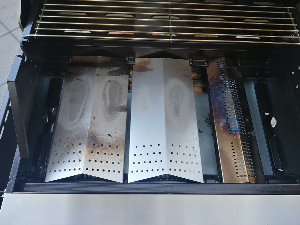 Ja funktionieren tut er noch. Eine Schweißnaht am Rost ist kaputt. Die Farbe außen ist beim letzten grillen in Flammen aufgegangen und es gibt keinen richtigen Fettaufgang sondern es sieft alles unten raus.