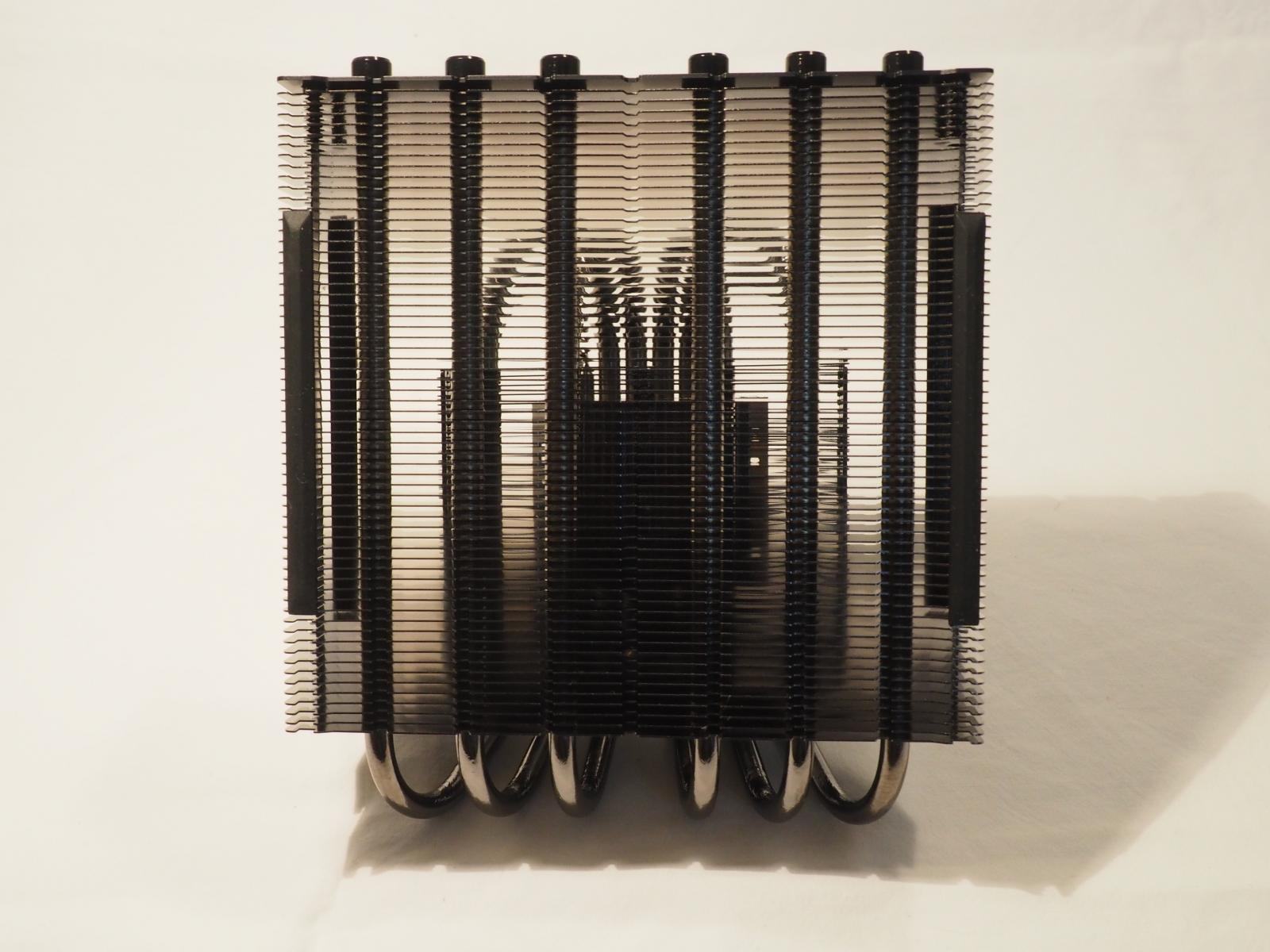 Der Kühlkörper wirkt sehr hochwertig verarbeitet. Alle Lamellen sind aus schwarz eloxiertem Aluminium gefertigt und weisen keine scharfen Kanten oder Kratzer auf.
