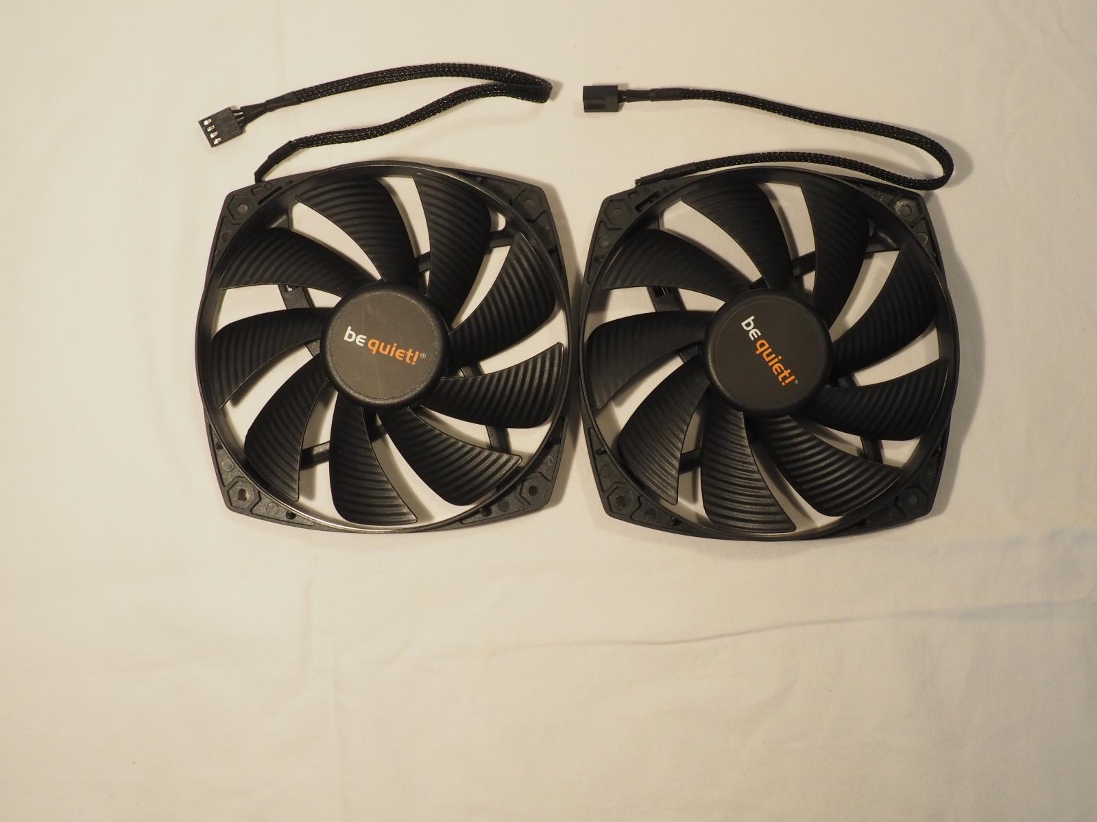 Zunächst werden die beiden Silent Wings Lüfter auf dem Kühlkörper montiert. Die entsprechenden Antivibrationspads sind bereits aufgeklebt und so müssen nur die Lüfter mit den Halteklammern befestigt werden. Das funktioniert gut und ohne Probleme.