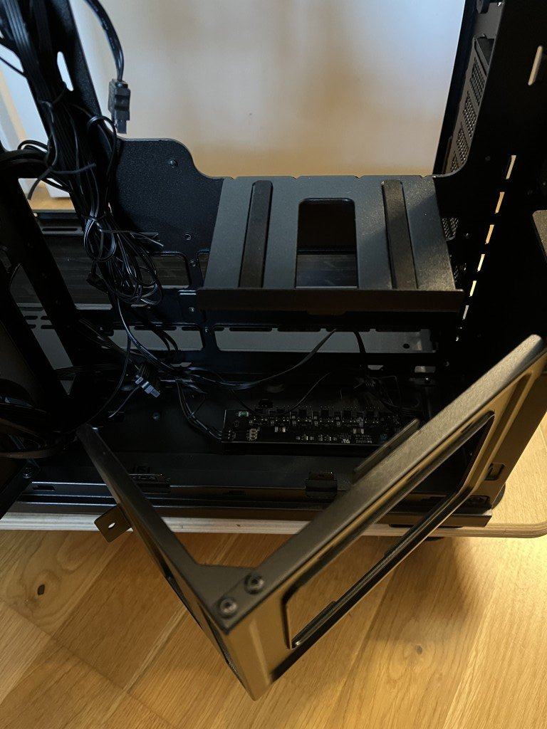 Der Einbau der Hardware gestaltete sich recht einfach. Nachdem Seitenteile, Glasseite und Glasfront demontiert waren, kam man gut von allen Seiten an alle Anschlüsse ran. Die Mainboard-Blende ließ sich zu trotz des bereits vorinstallierten Lüfters an der Rückseite ebenso leicht montieren wie das Mainboard selbst, welches seinen Platz, auf den bereits für ATX-Mainboards vorinstallierten, Standoffs fand. Anschließend wurden noch Netzteil sowie die Grafikkarte installiert und alles entsprechend verkabelt. Durch die vielen Durchführungen im Tray sowie dem vielen Platz hinter dem Tray ließ sich Board und Grafikkarte problemlos verkabeln und der Rechner in Betrieb genommen werden.