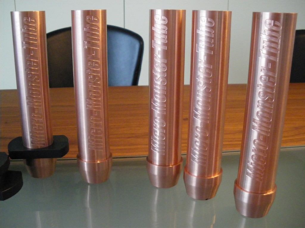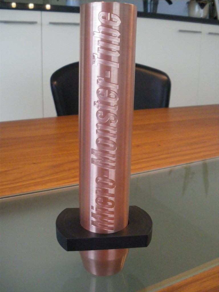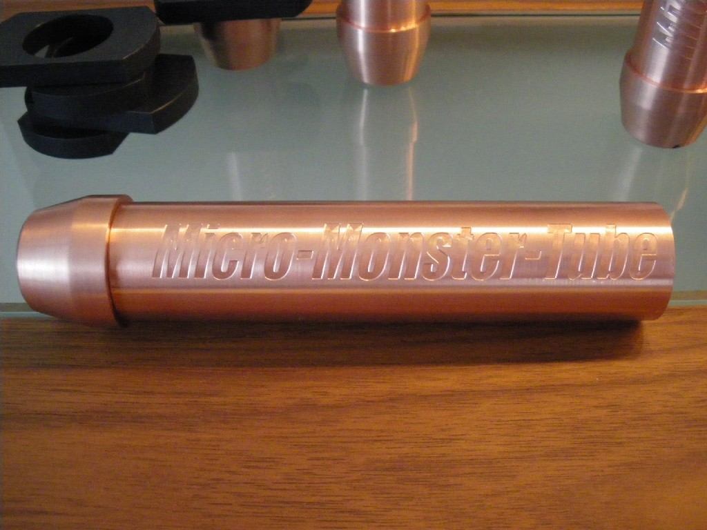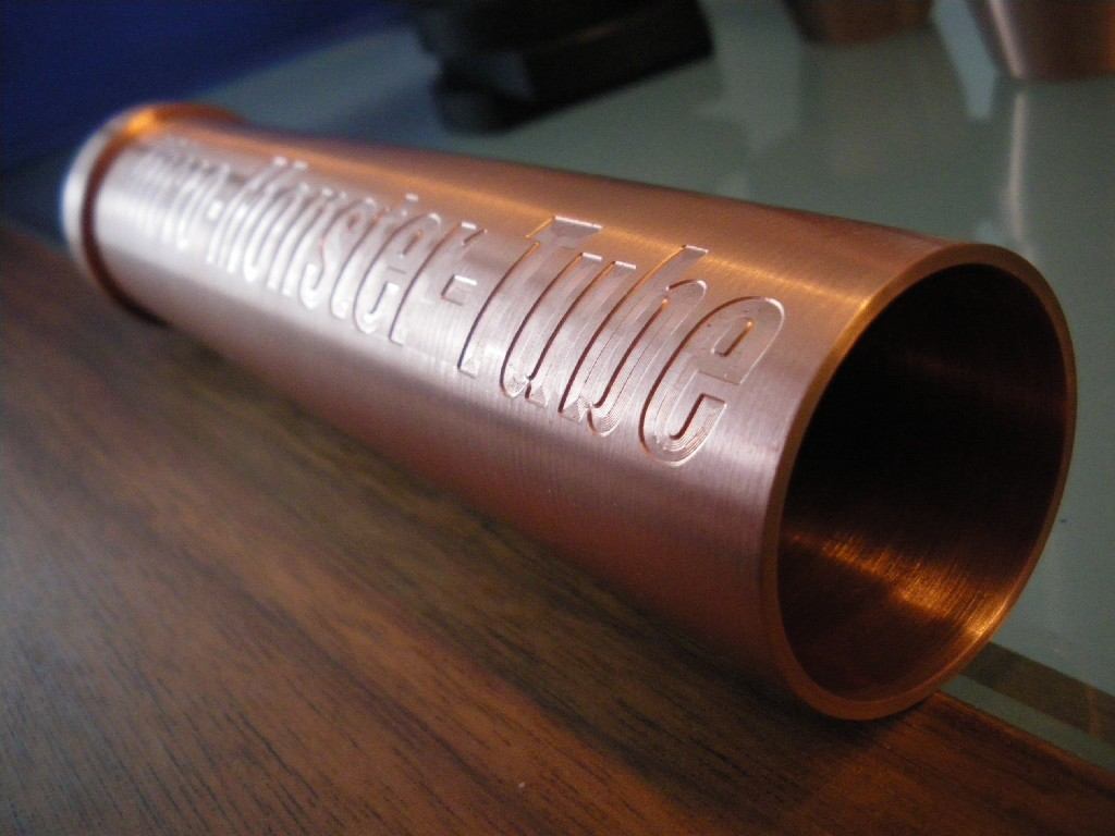 Der Tube ist aus Kupfer mit aufgeschrupftem Alurohr Durchmesser 80mm und einer