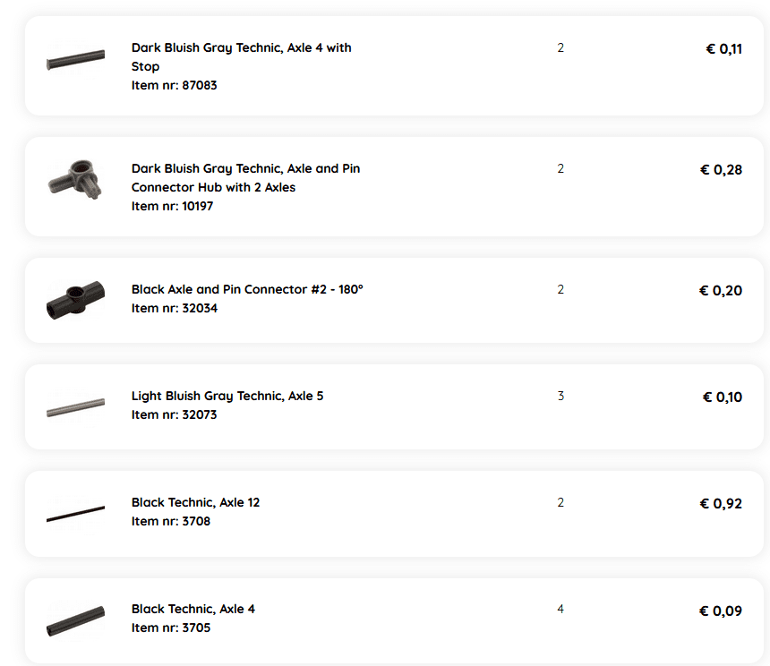 Aus Faulheit hab ich einfach alle Legosteine bei toypro.com bestellt.