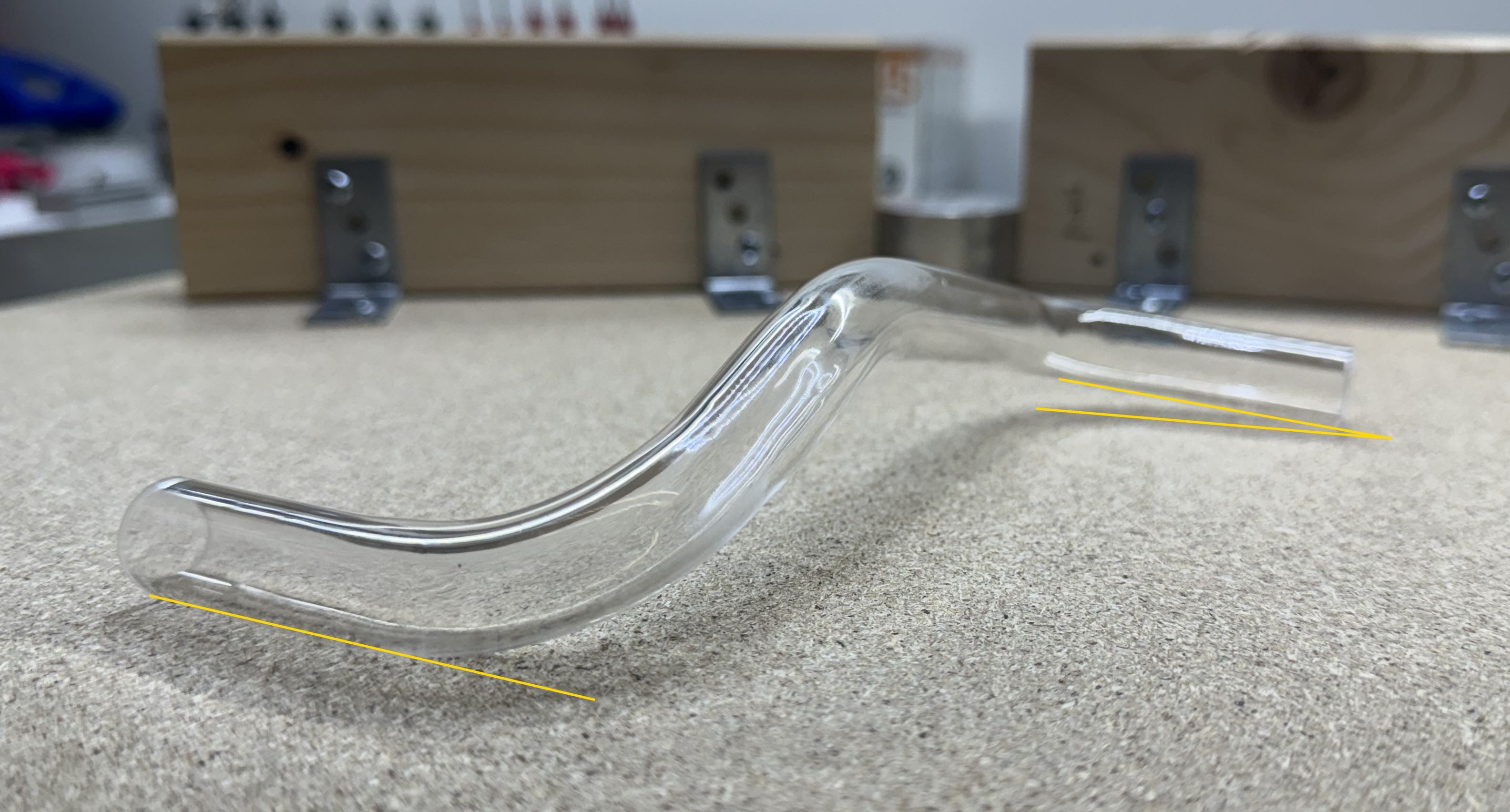 Damit ist nun aber der meiste Aufwand beim letzten Rohrbogen notwendig gewesen. Der ist zwar schon immer am aufwändigsten gewesen. Für die Ausrichtung des Anschlags bei diesem habe ich aber bestimmt 3x so lange gebraucht wie für die beiden vorherigen Bögen zusammen.