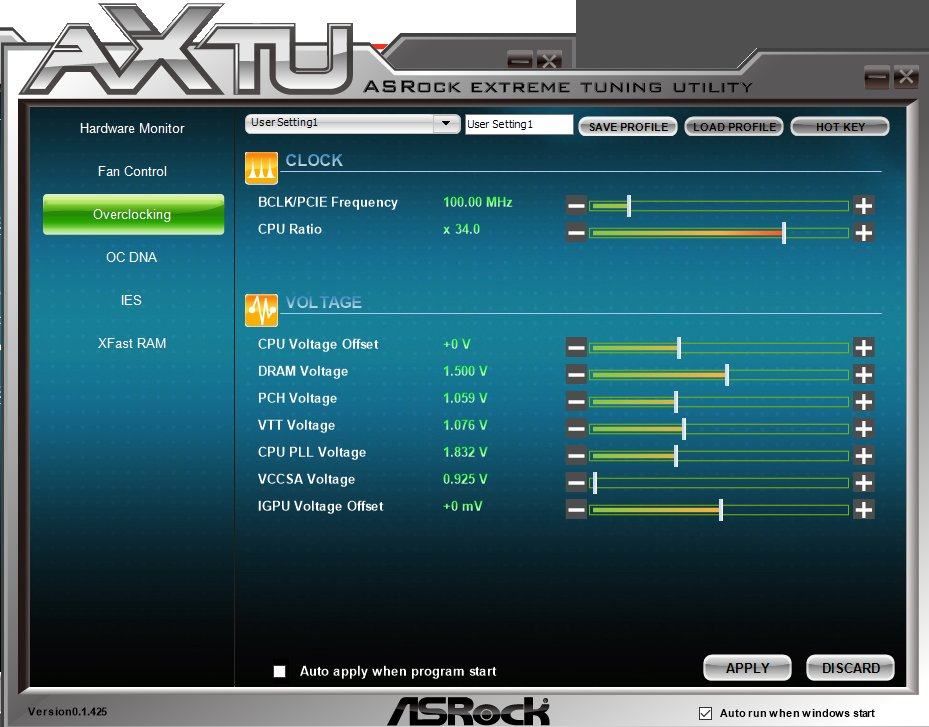 Anbei noch die Einstellungen aus dem ASRock eXtreme Tuning Utility, bei denen mir damals hier jemand aus dem Forum geholfen hat. Vielleicht bringt das ja des Rätsels Lösung.