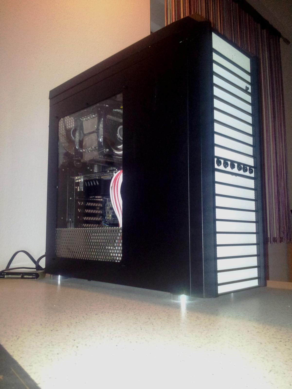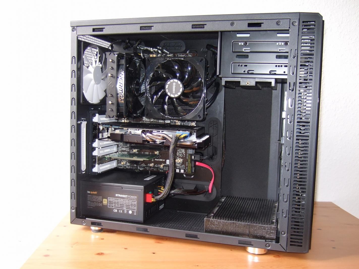 Habe den Plattenkäfig komplett rausgenommen und ne SSD hinten montiert damit vorne mehr Luft durchziehen kann.