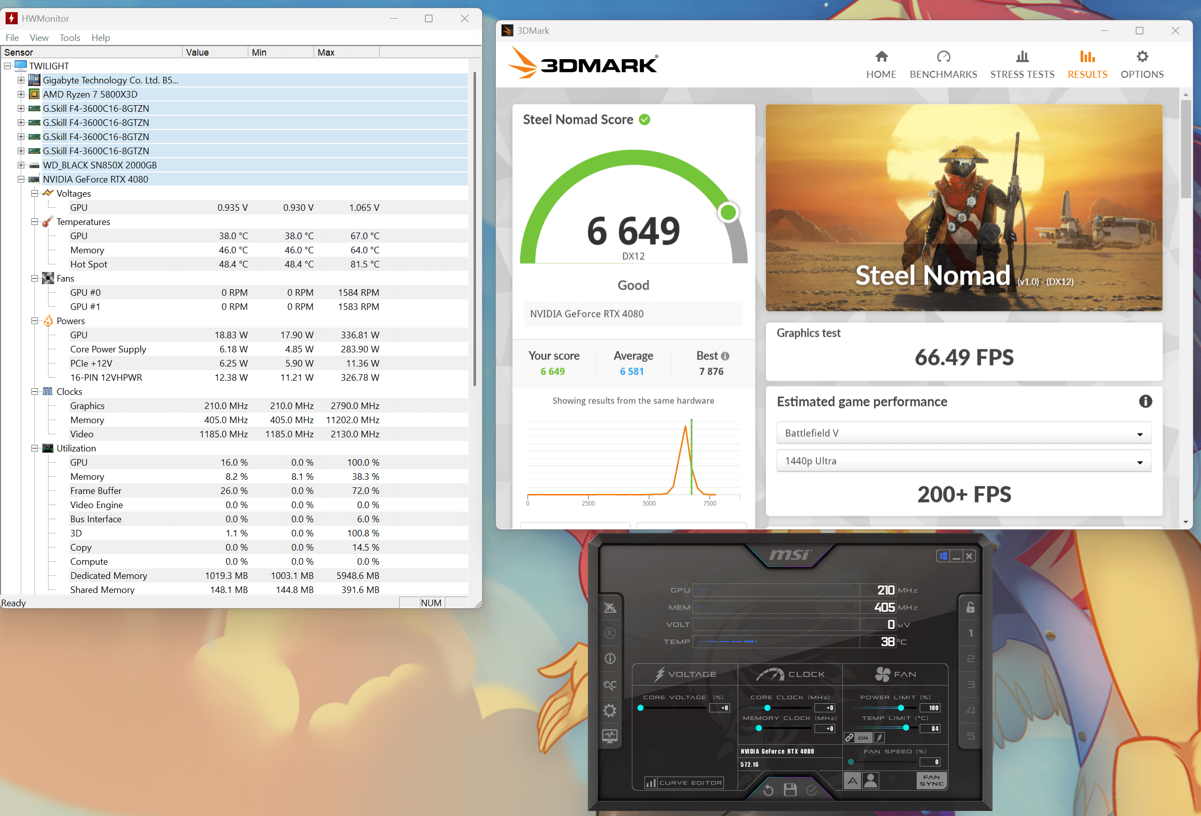 OC habe ich noch nicht probiert, einfach hier mal die Standard Werte mit Standard Bios, dazu meine 4080 im Vergleich und paar Impressionen. Mit OC warte ich noch, bis NVidia nen neuen Treiber raushaut.