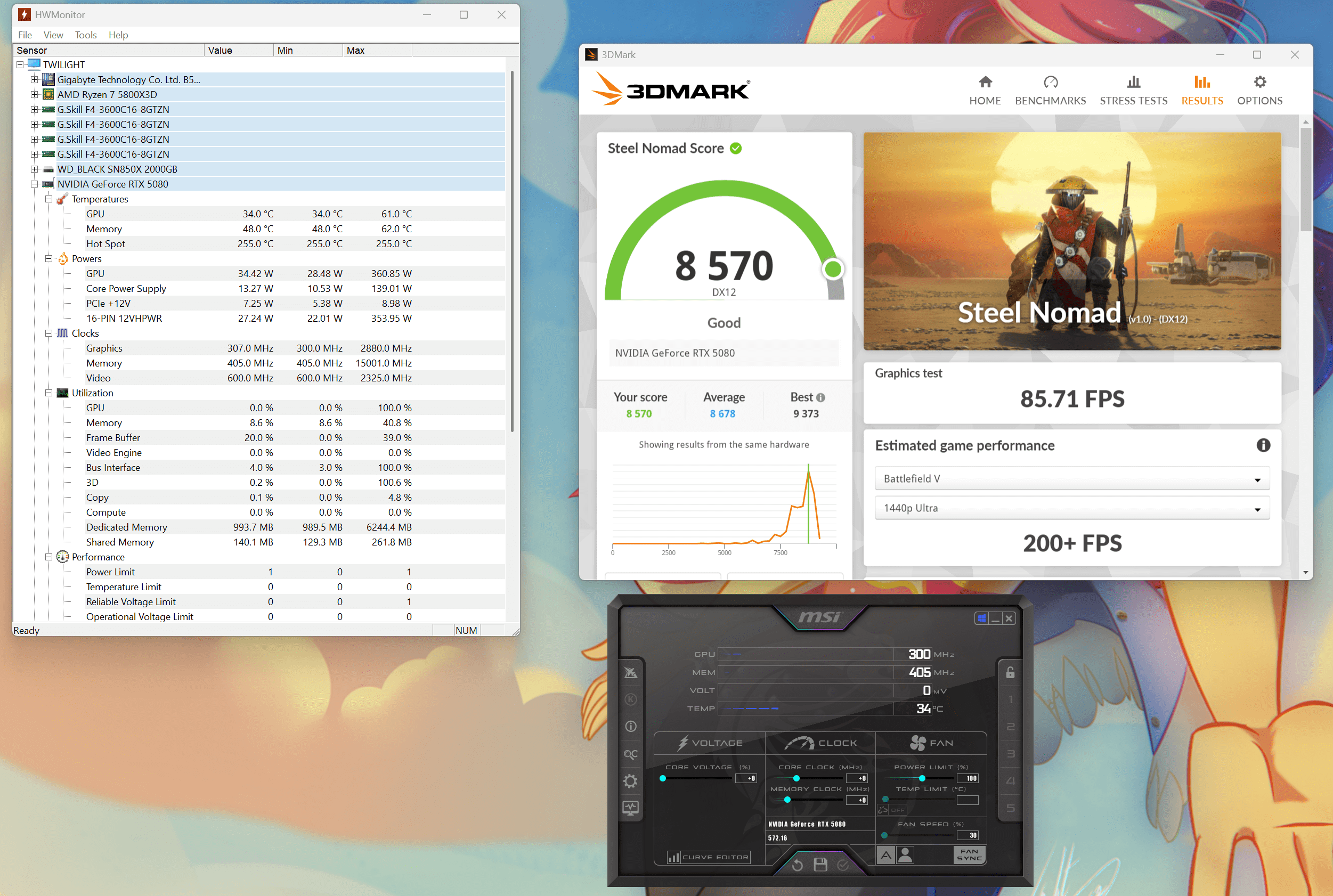 ich habe wirklich alles versucht, aber meine Zotac Gaming Solid 5080 kommt im Benchmark nicht über 7700 Punkte hinaus.