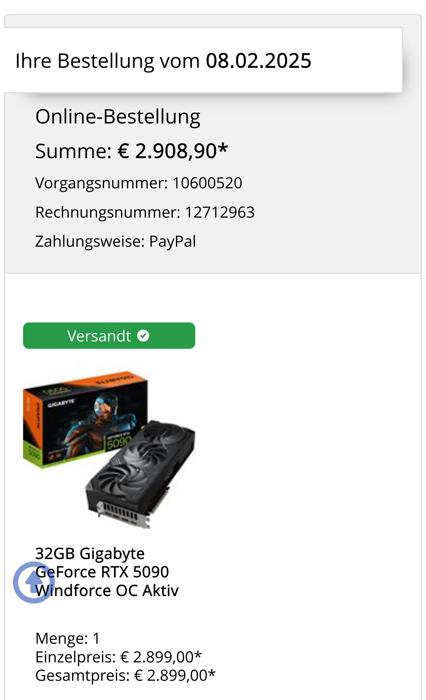 Was hat die gekostet?Ich habe Glück und hab die PNY 5090 auf Amazon zur UVP bekommen. Für mich bedeutet dieser ganze Release nur noch, dass ich in Zukunft noch mehr auf Amazon kaufe.