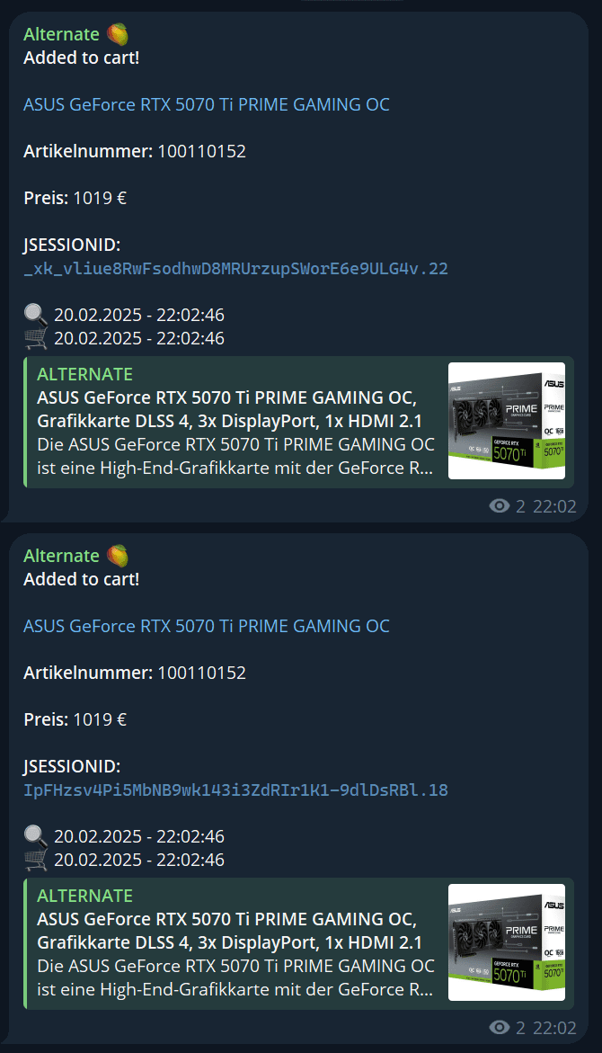 Würde mir bitte jemand eine Anleitung schicken, wie das mit den Cookies funktioniert? Danke.Will jemand noch 5070 Ti Cookies, damit wir Alternate mal leer bekommen? Die laufenden Meldungen nerven -_-