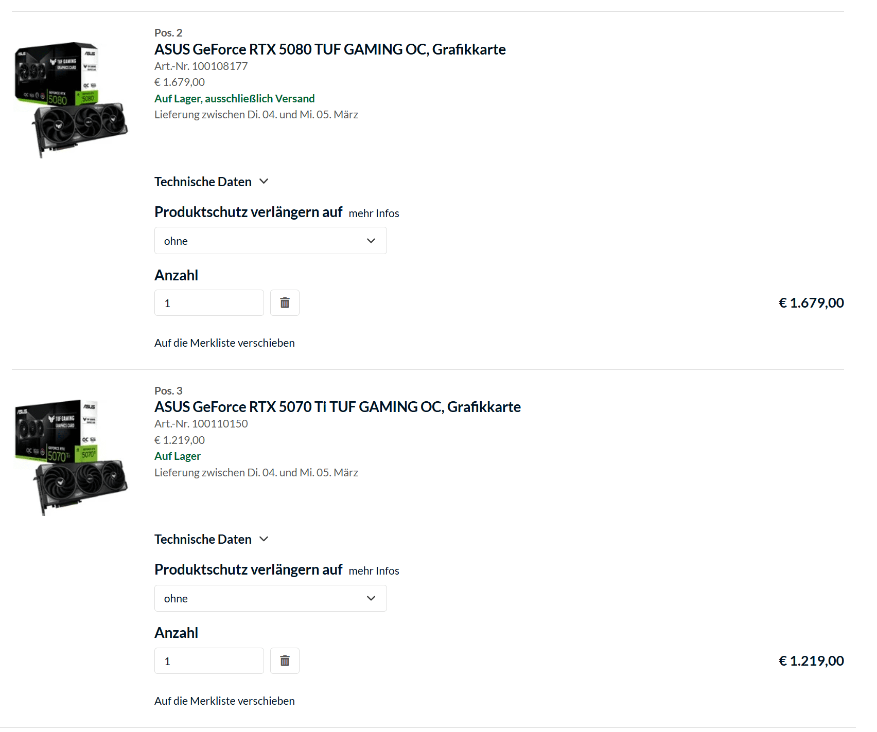 Verkauft eigentlich überhaupt noch wer 5080er Tufs außer amazon, wo alles isntant weggebottet wird?