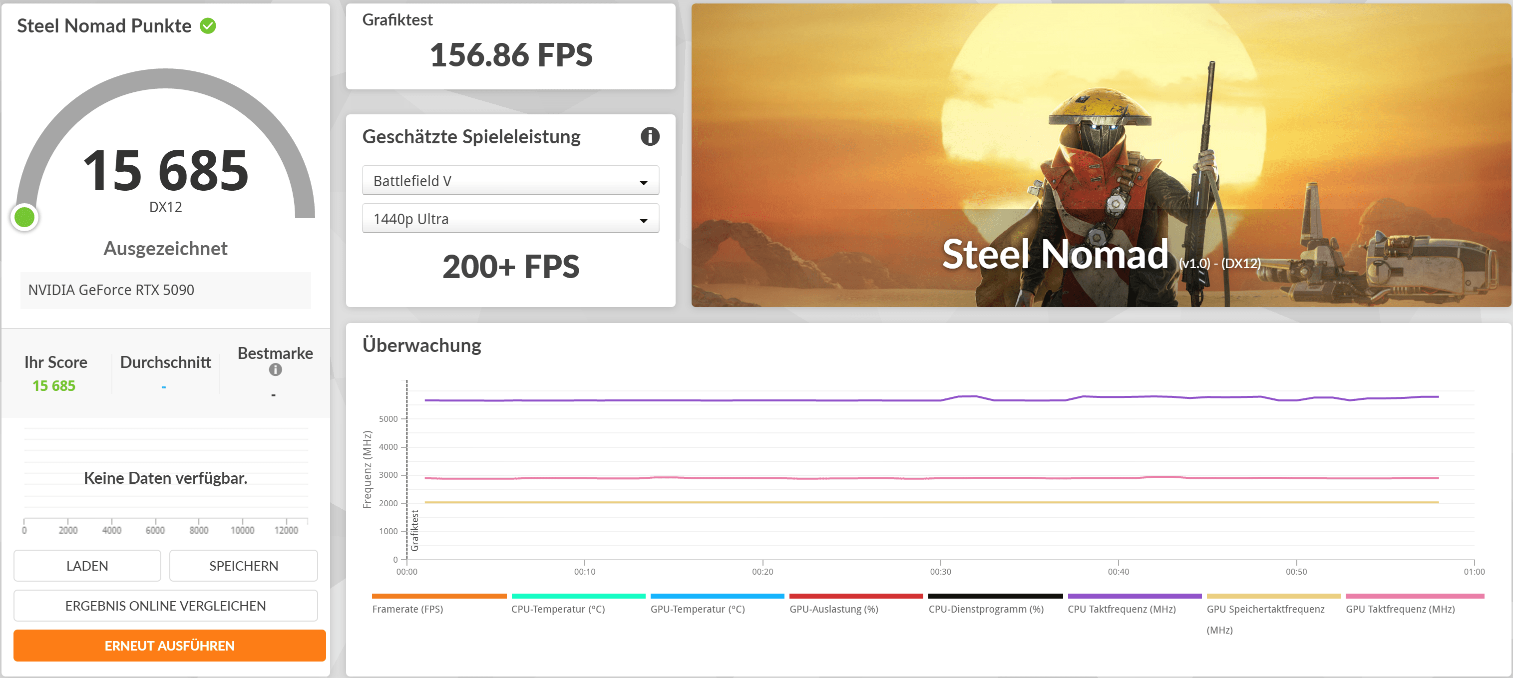 Schau mal auf die 468 Watt. Da dürfte die CPU der Flaschenhals sein......Dumme Frage sorry, aber sind die Grafikpunkte bei Timespy für eine 5090 nicht um knapp 11.000 zu gering ?