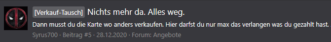 Ändert ja nichts daran, dass er es vor paar Jahren angeprangert hat und jetzt selbst praktiziert...Habt ihr mal auf das Datum geschaut? "Scalpen" wurde später im Marktplatz erlaubt.