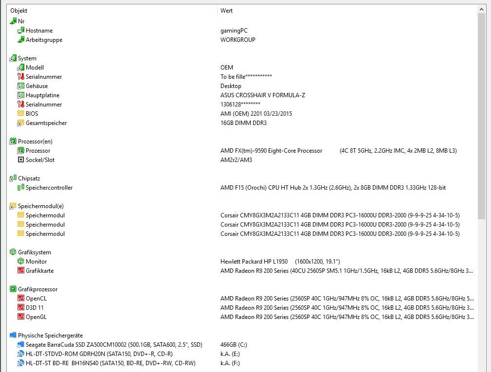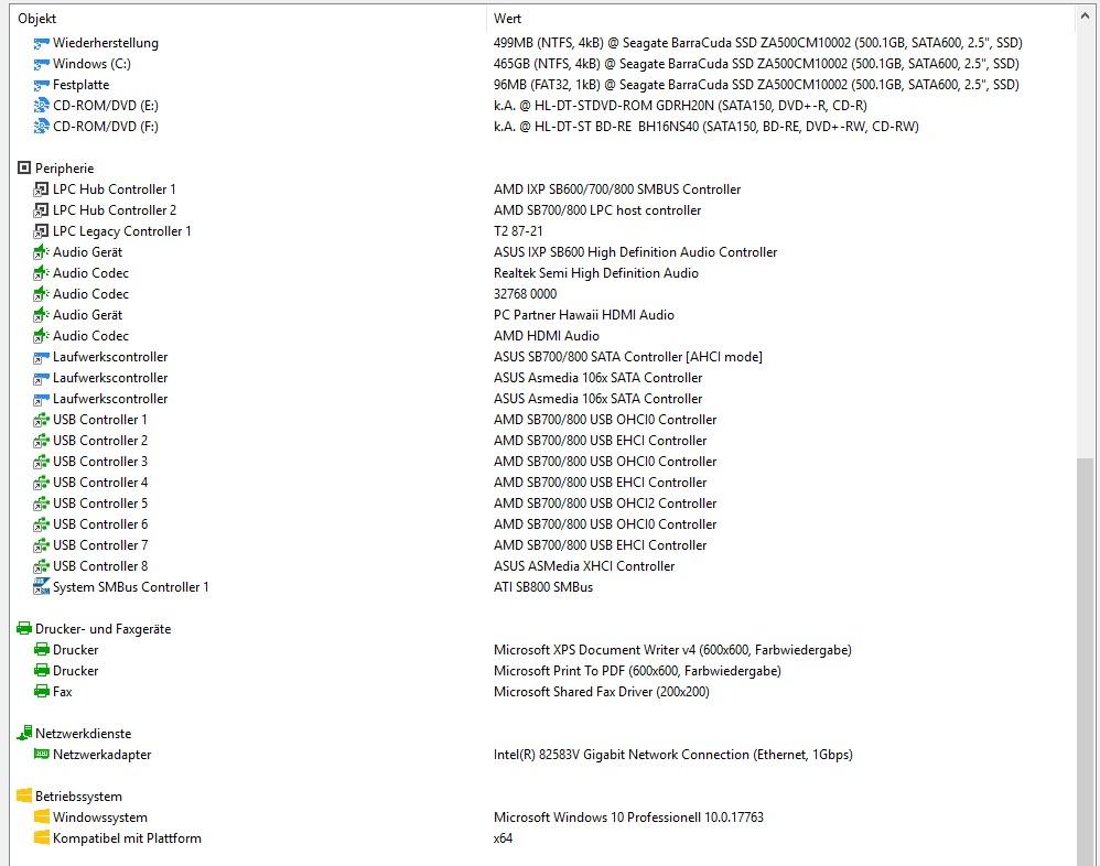 Nachtrag: gerade eben als ich eine Inventarliste über den PC erstellen wollte, wieder ein BSOD und danach startete der PC nicht mehr, also Powerbutton gedrückt und ohne einen Ton nach ca. drei Sekunden wieder aus. Ich habe dann am Netzteil den Hauptschalter aus, ein paar Sekunden gewartet und nun ist er wieder oben.....