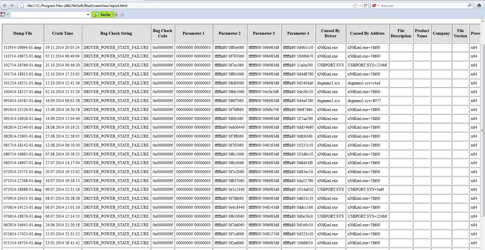 Das Programm bluescreenview liefert untenstehendes.