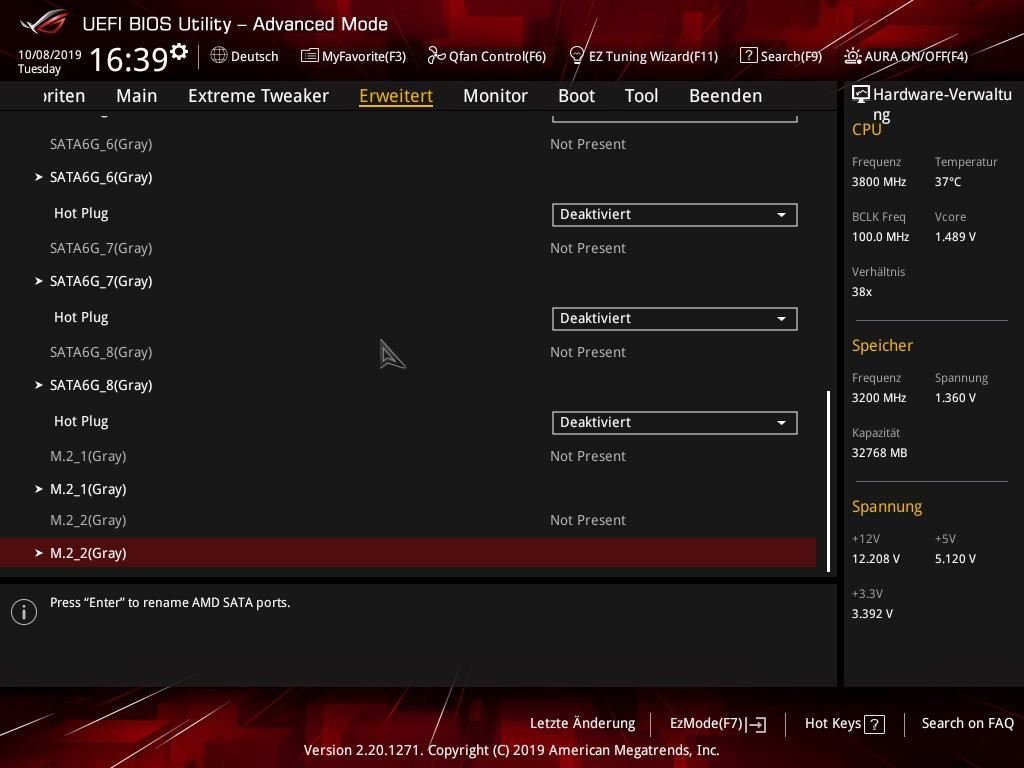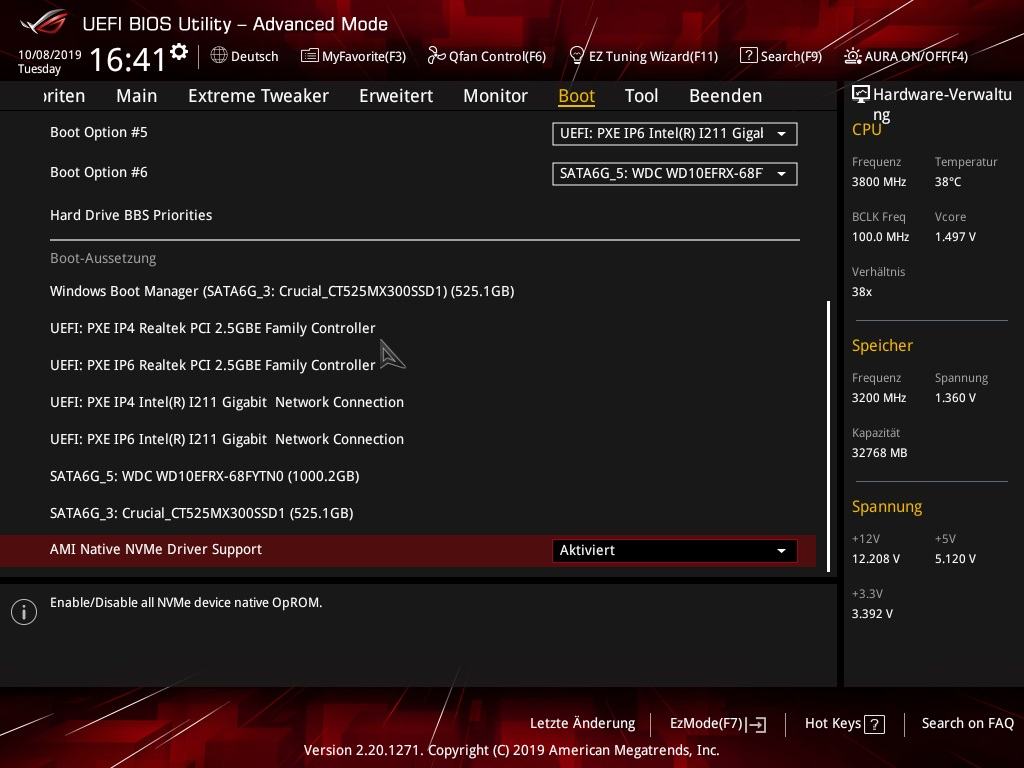 leider taucht sie unter NVMe Configuration auch nicht auf wenn ich da drauf gehe steht leider nichts und kann auch nichts auswählen habe sie schon in einen anderen m 2 slot gesteckt selbes problem :(