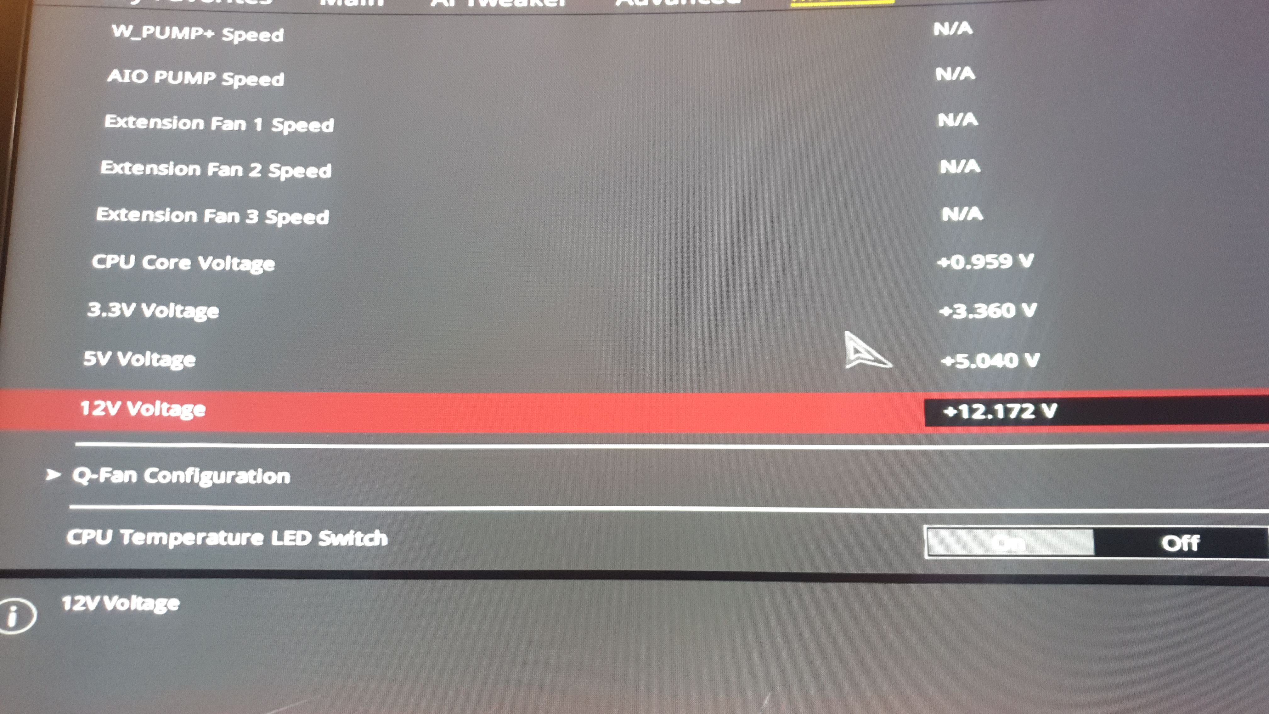 du kannst mit einem hardware tool auslesen ob die spannungen für 12v, 5v und 3,3v im rahmen liegen.