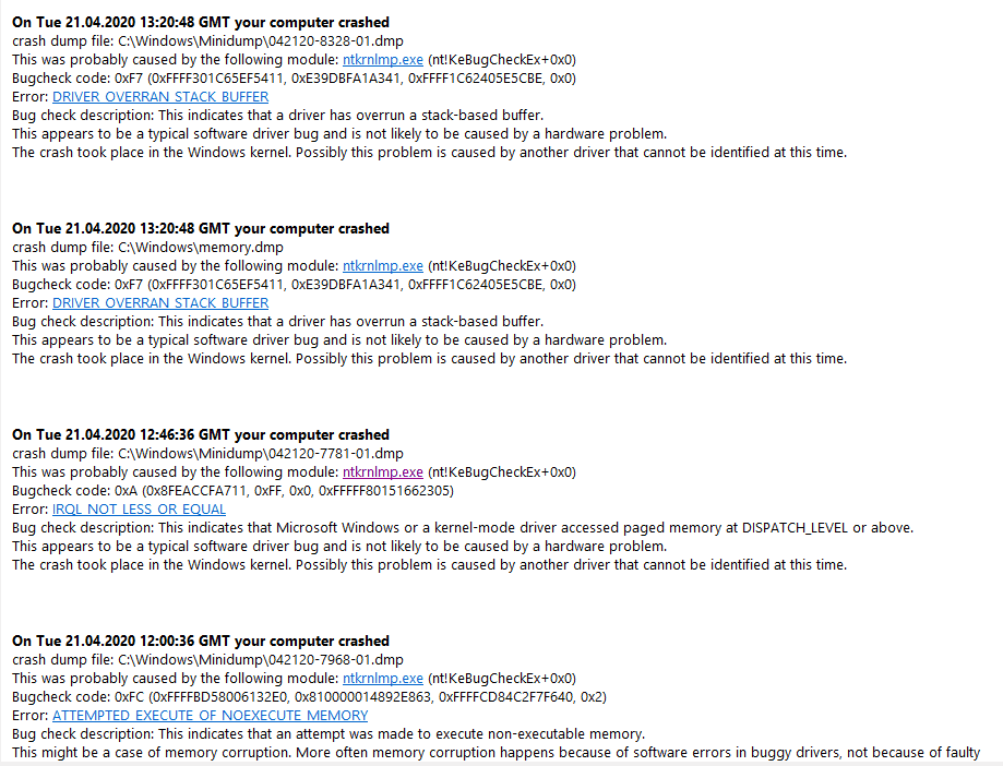 Geräte Manager ist alles up2date. Habe nochmal die nvidia treiber gelöscht und neu installiert, war auch keine Lösung. Neueste Bluescreens bringen jetzt aber nur noch diesen Fehler hier