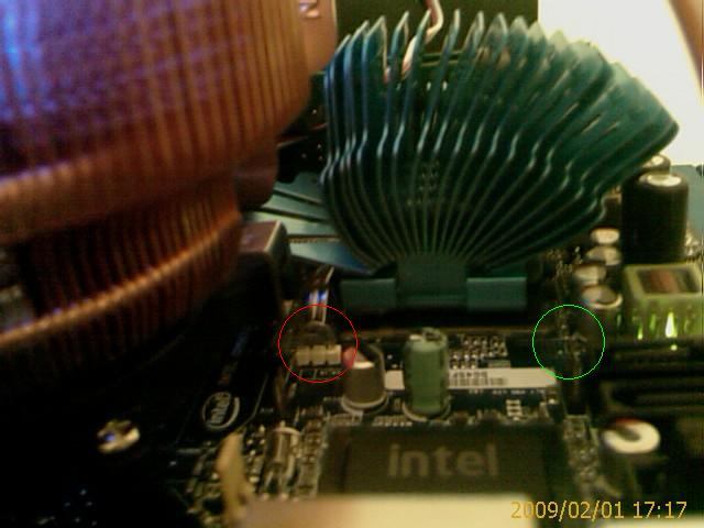 Bild IMAG0015.jpg die befestigung vom ChipsatzKühler! (Rot is die Halterung udn Grün den ort wo noch eine sein sollte um das ganze richtig zu befestigen!)