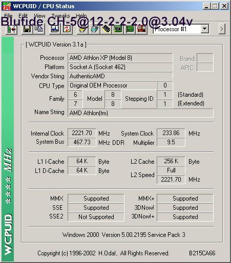 Ergebnis : 210 Mhz bei den Timings 2-3-2-5 und ~2,88 Volt.