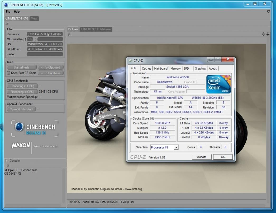 arch3990 | 29.390 | 4.142 | 7.10 | 8 + 8 SMT | 45nm | 2 x L2-Cache: 4x 256kB L3-Cache: 8MB (Gainestown) | 2x Xeon X5560 ES | 2800MHz @ 3066MHz (Turbo) | 1,18V / 1.18V | 23 x 133 MHz (QPI 3200MHz) | 6 x 1024MByte | DDR3 @ 1333 CL8 | Quadro FX 570 | Win XP x64 SP2 | Luft