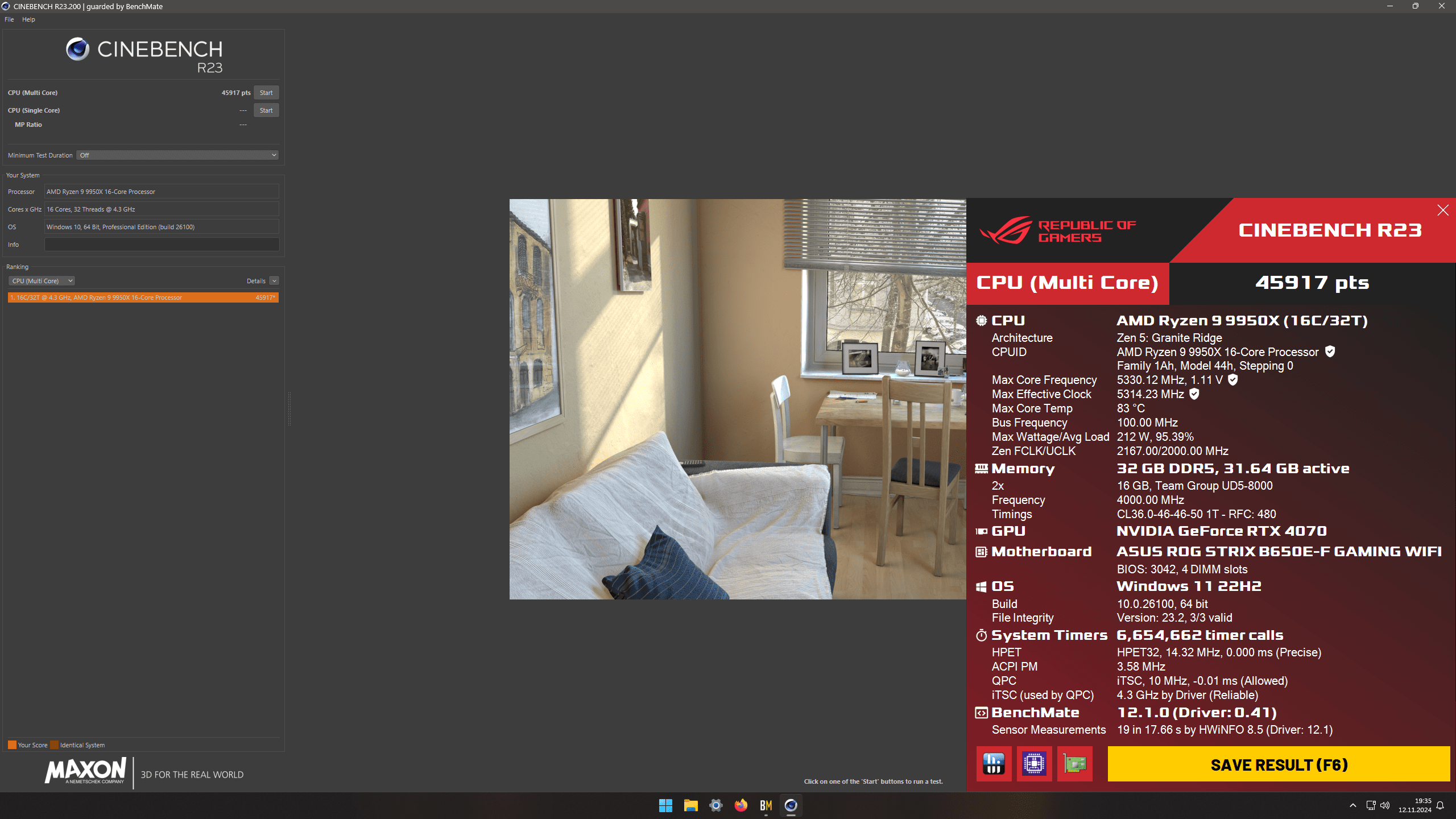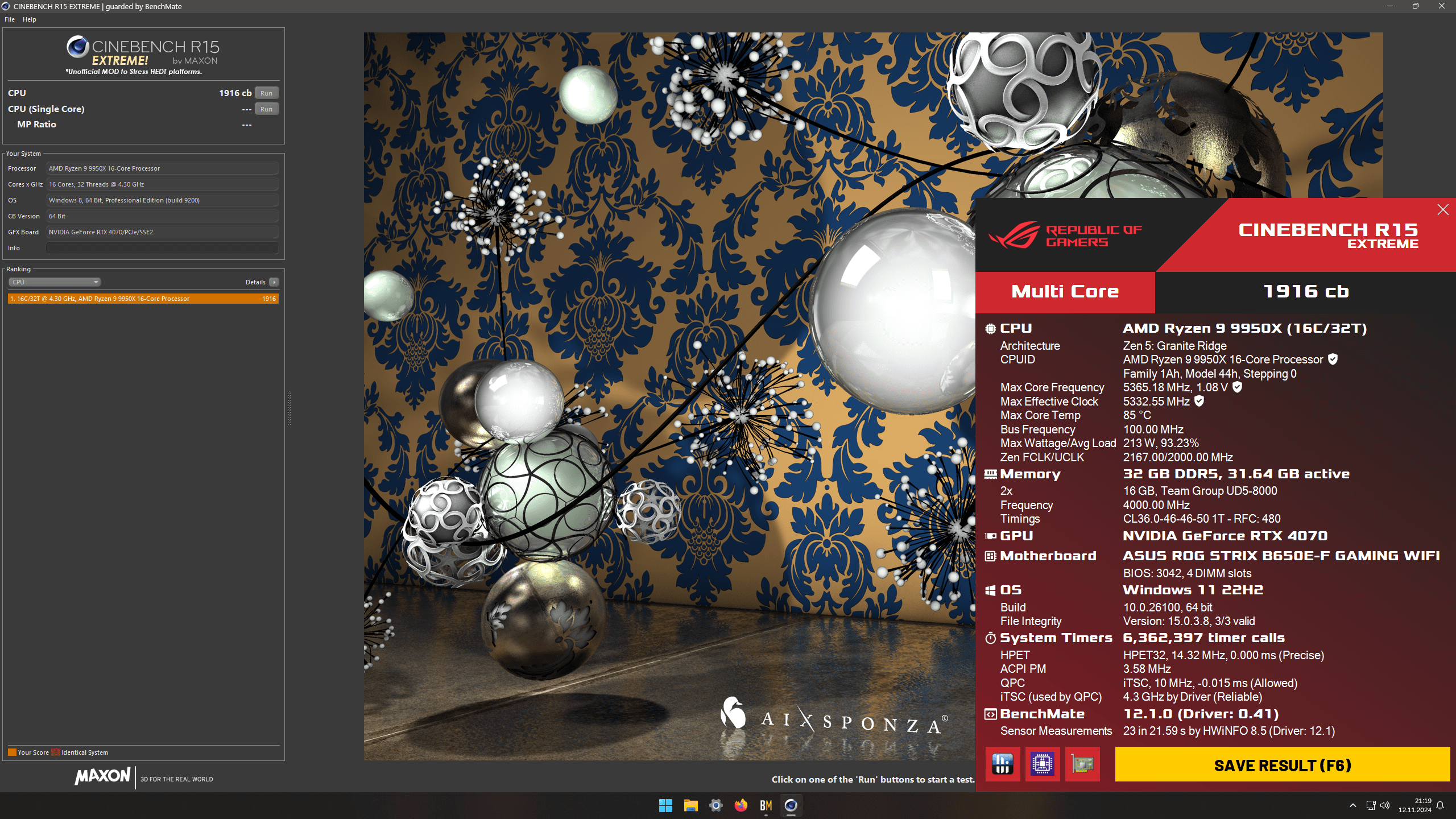 Ryzen 9 9950X CO-40 / DDR58000 @36-46-46-50 -> SC 2291 / MC 45120