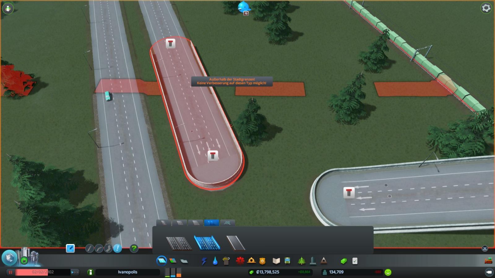 Bzw. versuchst du auf dem Bild ja auch ausserhalb der Stadtgrenze eine Straße zu ändern, wie wäre es denn gewesen wenn du die Straße so belassen hättest und erstmal in deinen Berreich gezogen und dann verändert hättest?!