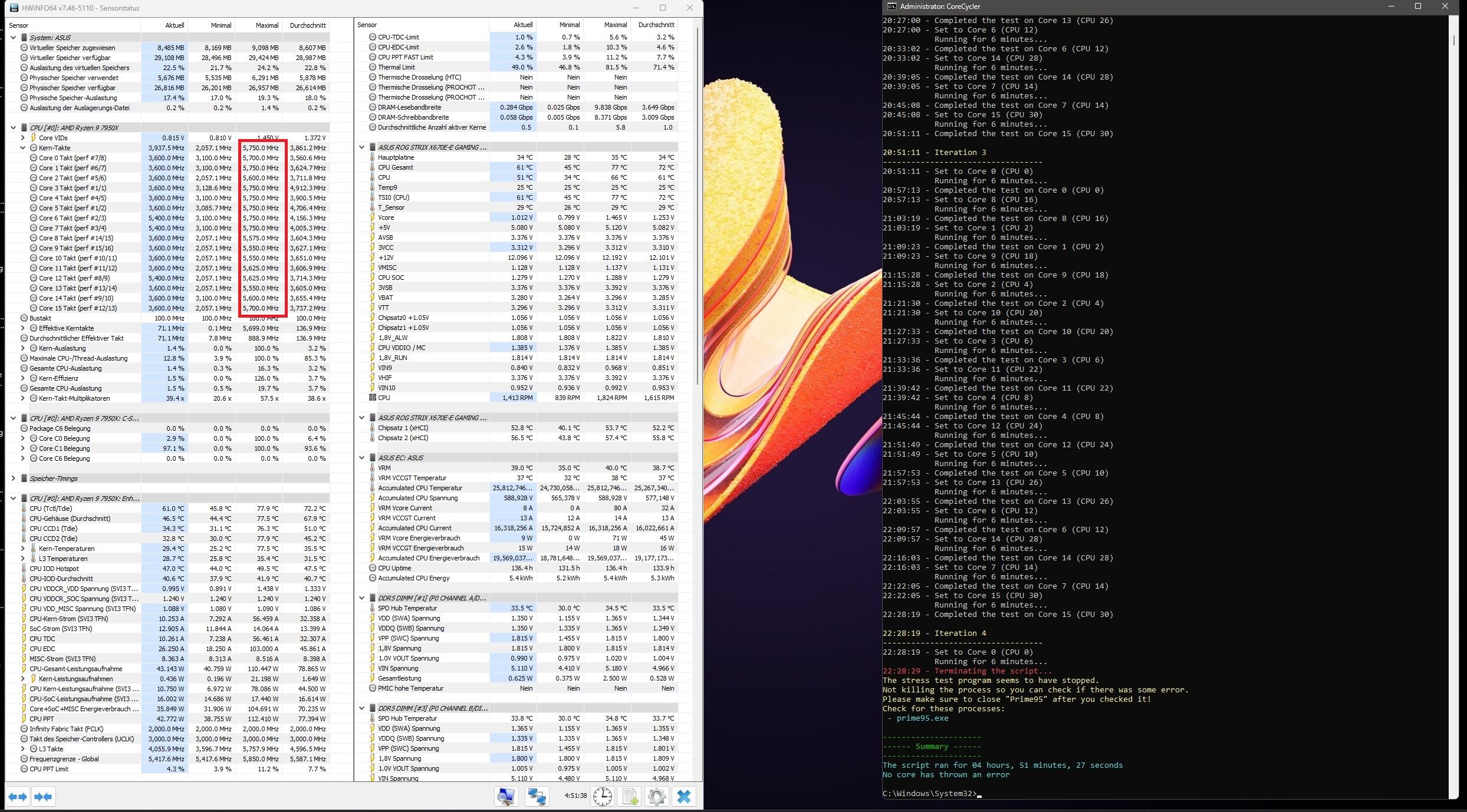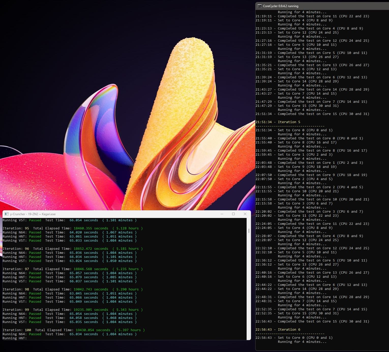 Endlosschleife bzw. es sind in der Config 10000 Durchläufe voreingestellt ^^Morgen werde ich mit den CoreCycler mal versuchen und mit -10 anfangen auf alle Kerne.