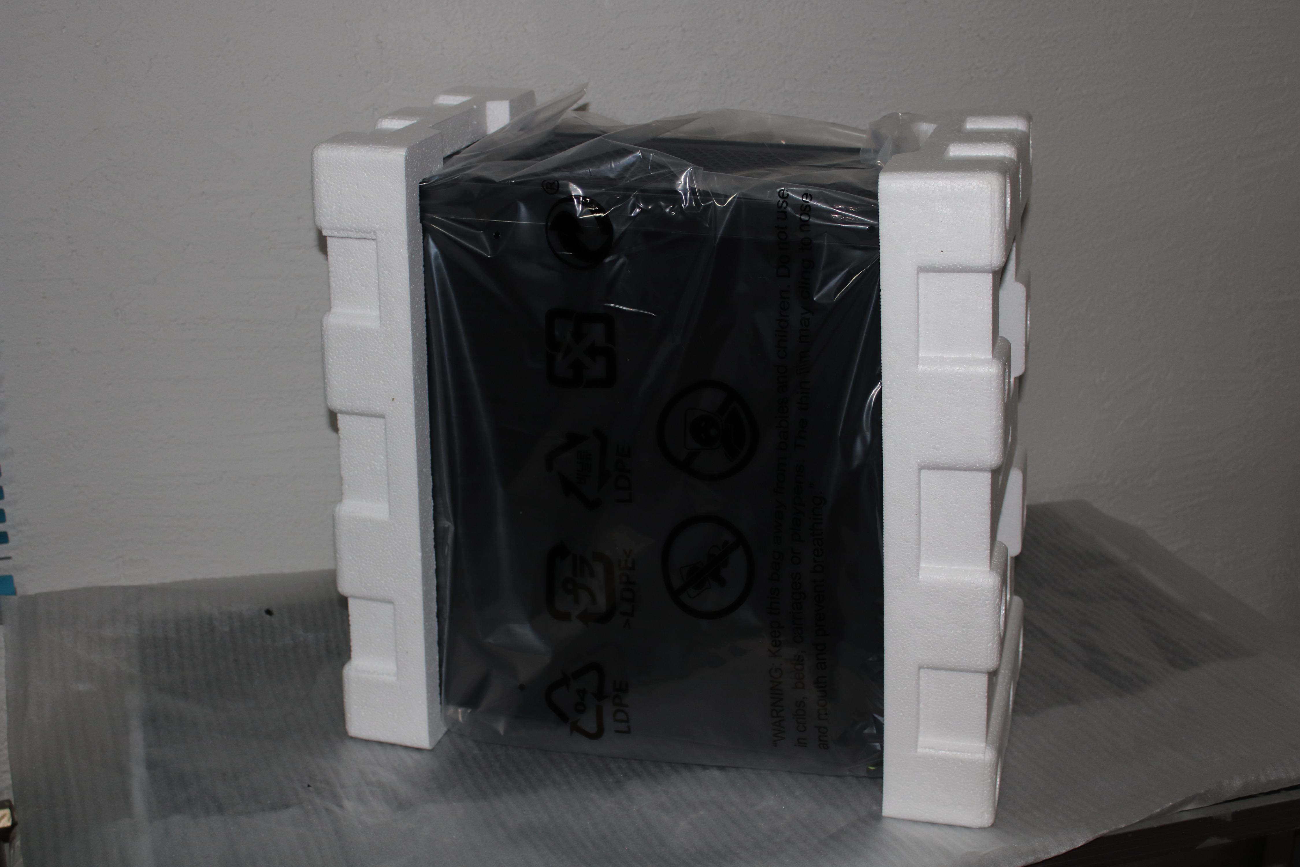 Geliefert wird das Gehäuse in einem brauchen Karten und ist für den Transport in einer Tüte zwischen zwei Styroporteilen gesichert. Neben einer Skizze und Informationen zum Gehäuse sind auf dem Karton das mitgelieferte Zubehör, sowie auch eine Explosionszeichnung zu finden.