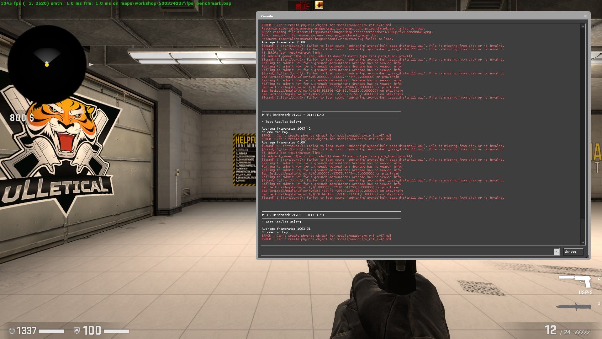 Gebencht wird mit der Workshop Karte FPS Benchmark