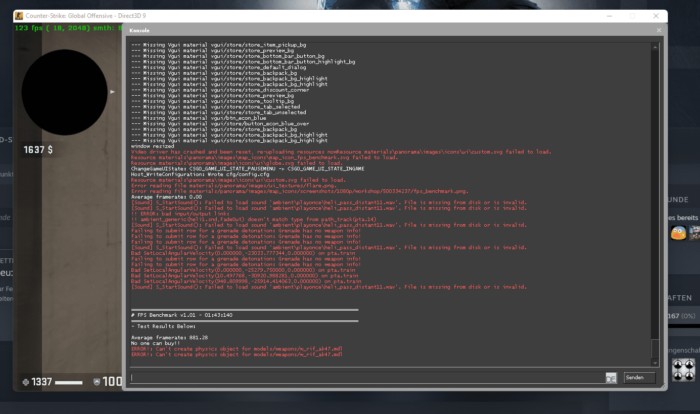 Finde es eher wieder erschreckend wie nah du an meinen FPS bist mit 100 Mhz weniger. Aber kannst ja mal die Autoexec probieren. Die muss mit den Startparametern in Steam in den Ordner von CSGO (SteamLibrary\steamapps\common\Counter-Strike Global Offensive\csgo\cfg) mit dem namen "autoexec.cfg".