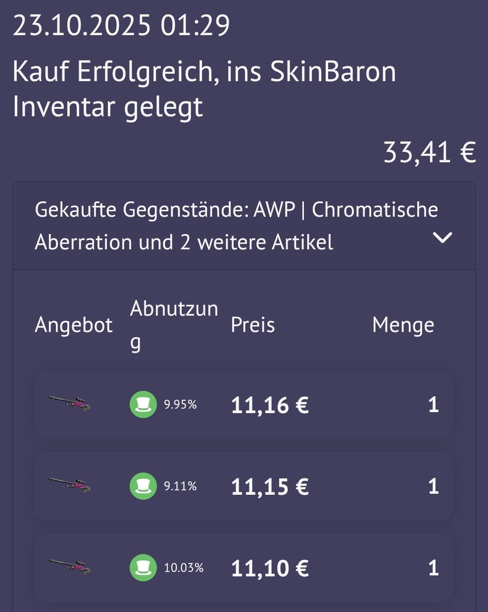 Das eine war schon seit 4 Wochen gelistet, da musste ich nur mit dem Preis runter gehen und das andere war ein Low Budget Knife auf dem Zweitaccount, welches ich direkt über Steam rausgeschossen habe.