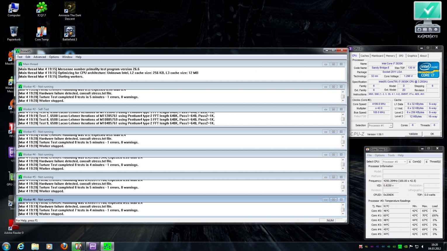 Mit IntelBurnTest habe ich auch schon mal getestet, aber da ich soweit kein einziger Kern ausgefallen laut CPU Z