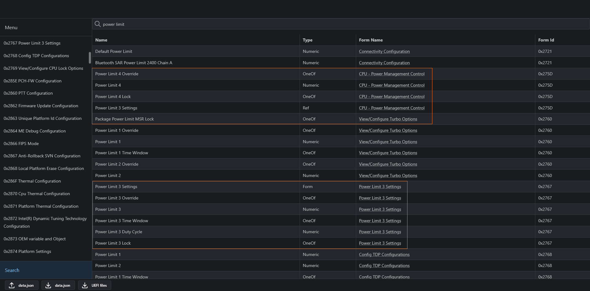 Aus Neugierde wieviel der Prozessor leisten kann wenn man ihn von der Leine lässt, hab ich PL1 und 2 komplett aufgemacht und den OCCT CPU-Test laufen lassen. Nach ca. 1 Minute gabs ein Freeze. OK, dachte ich mir, komplett offen ist wohl zu viel, mach ich PL1 und 2 wieder wie vorher. Pustekuchen! Jetzt geht garnix mehr!