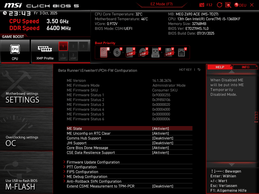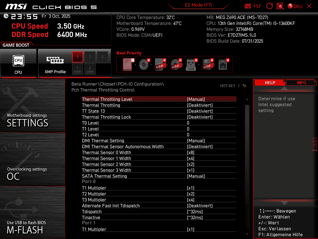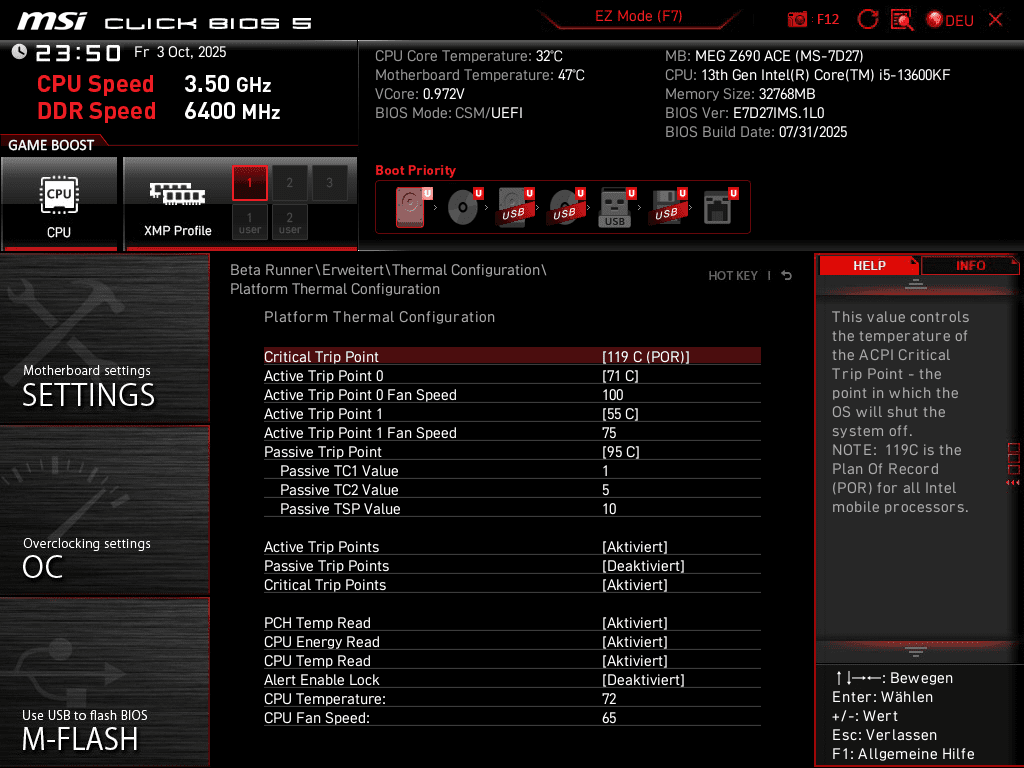 Intel 200S Boost aktiviert, PL2 auf 250W, nach 3 Minuten greift PL1 auf 200W. Ansonsten alles standard im BIOS. Das System lief stabil, keine Problme, keine Aussetzter - alles Super!