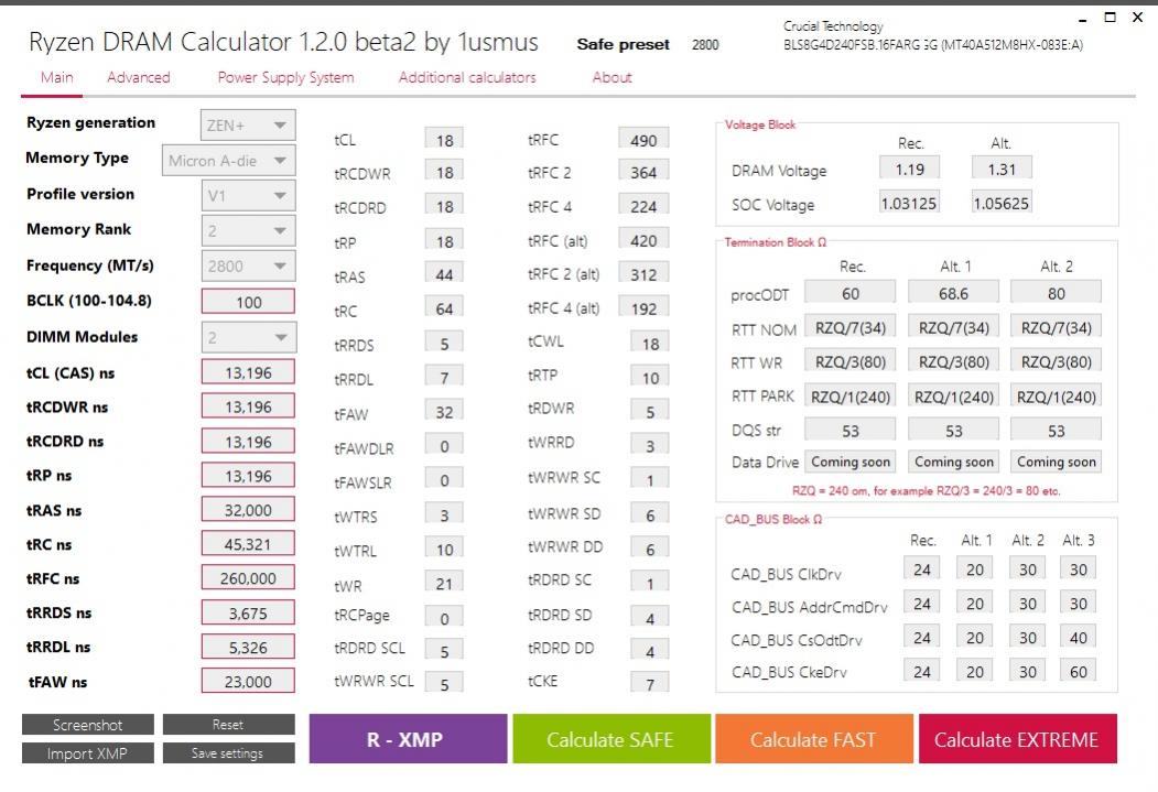 Ryzen DRAM Calculator 1.2 hat mir für 2800MHz die Werte ausgespuckt: