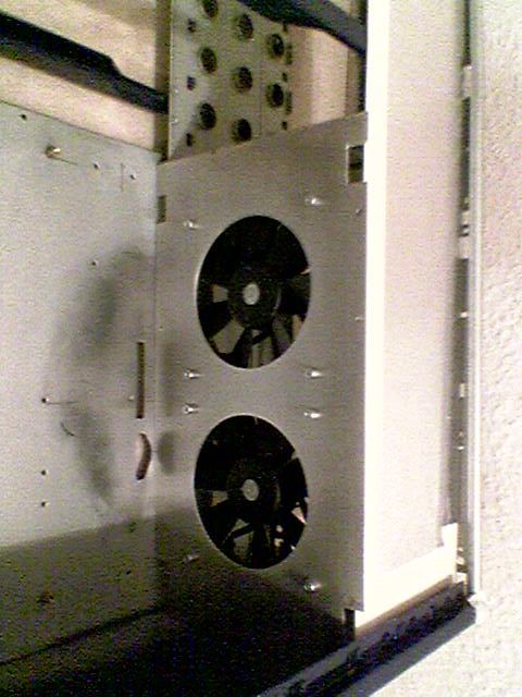 Die HDD- Käfige wurden rausgenommen. Eine Aluplatte für die beiden 120mm TITAN ALU Frame Lüfter.